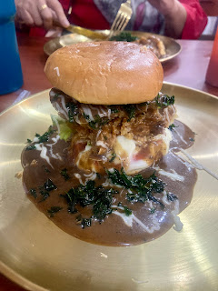 Double chicken burger (harusnya pake saus keju tapi habis jadi diganti saus jamur) Rp.27.000